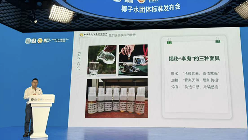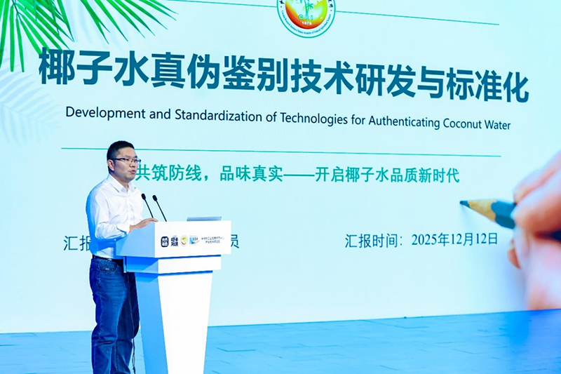 中国轻工业发展研究中心产业技术研究院副院长 刘旭 标准在标签标识上做出规定,要求预包装产品标签应符合相关国家标准。复原椰子水应标明“复原”,非复原椰子水可标示“NFC”。符合标准的椰子水可“声称100%”。标准强调,“如实标注是生产者的法定义务”“也是对消费者知情权最基本的尊重”。 发布会上明确,椰子水的真实性是可被检测的。中国热带农业科学院椰子研究所产业发展部主任邓福明介绍,通过稳定同位素指纹技术,可以为椰子水“验明正身”。邓福明解释,通过氢氧同位素比例分析,可追溯椰子水的水分来源,从而有效识别掺假加水行为。此外,通过碳同位素分析,可以精准判断是否添加了其他植物糖源。