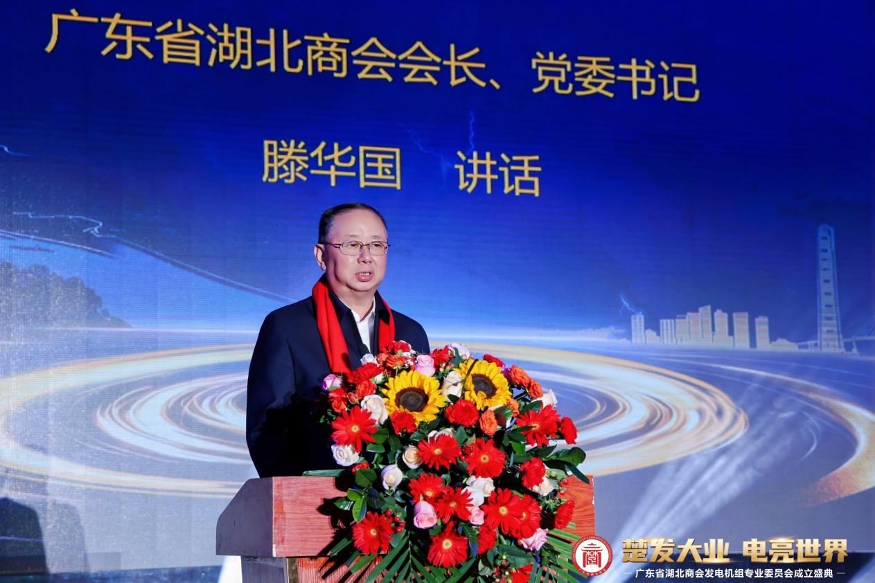 在庄严的国歌声中,盛典正式启幕。广东省湖北商会会长、党委书记滕华国率先致辞,他指出,专业委员会的成立是粤鄂两地发电机组行业交流合作的重要里程碑,将为行业技术创新、资源共享、市场拓展搭建高效平台,有力提升行业在应急救援、能源保障等领域的服务能力。