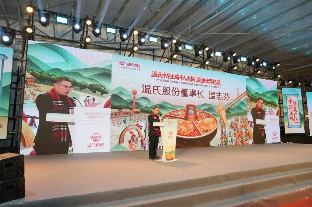 发表时间:2026-01-26 20:37 1月25日,广东云浮新兴县——这片被誉为“中华土鸡之乡”的土地上,迎来了一场融合美食、文化、科技与产业的盛宴。温氏股份于此成功挑战“最大规模中华土鸡火锅品鉴活动”吉尼斯世界纪录称号,并隆重举行了新兴温氏天露农场的揭幕仪式。活动当天,温氏还正式官宣明星主厨林述巍成为“温氏食材严选推荐官”,并以一场璀璨的无人机主题表演点亮夜空,全面展现了其在推动农文旅融合、夯实品牌实力方面的最新成果。