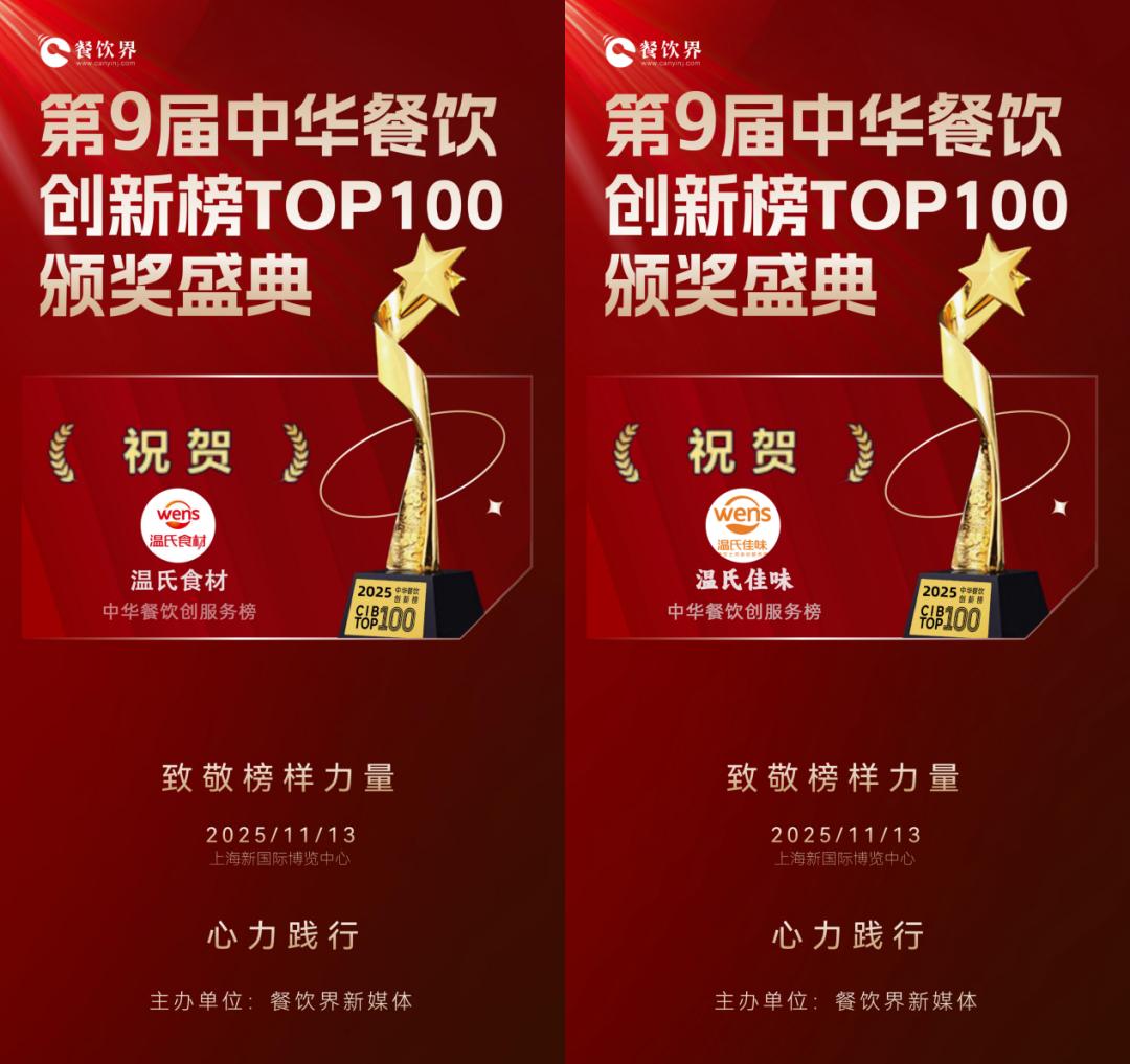 聚光灯在上海落下。在刚刚揭晓的“中华餐饮创新服务榜”颁奖现场,温氏食材与温氏佳味从众多参选品牌中脱颖而出,双双登榜。作为国内首个以“餐饮创新”为主题的权威评选,这份由《餐饮界》新媒体联合全国150余家媒体共同发起的行业榜单,已连续举办九届。本届评选通过300万+网友网络投票,联动全国150余家媒体矩阵推广,累计曝光超千万级,旨在发掘并表彰餐饮领域内具有突破性创新实践的品牌,温氏食材与温氏佳味双双登榜,标志其在餐饮食材服务领域创新成果获得行业与消费者双重认可。