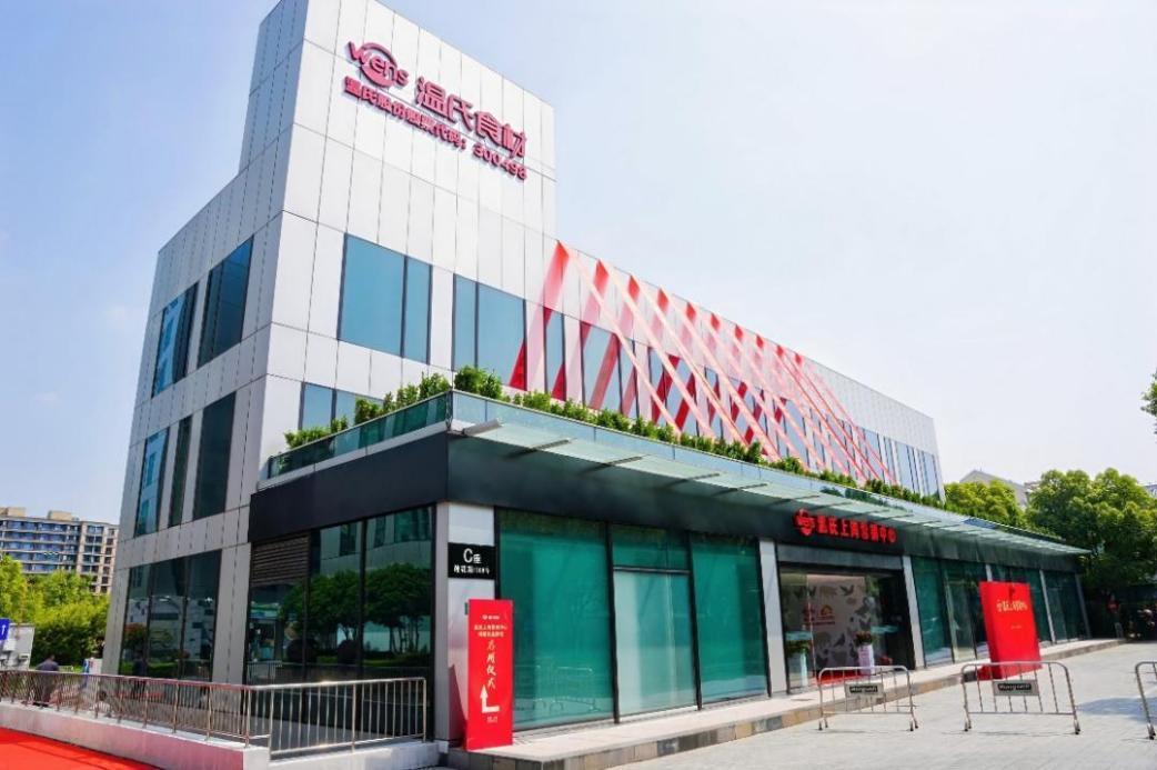 接下来的半天,一行人在这个开放的空间里,通过看、品、谈探寻答案。 看:128项关键数据背后的安全底气 上海营销中心是温氏食材在今年5月正式启用的全新空间,坐落于虹桥枢纽15分钟交通圈内。步入这个900平方米的展厅,仿佛打开了一本立体的品牌“说明书”。 定位于“餐饮土鸡食材服务商”的温氏佳味、秉持“生态高标准,自然更鲜香”理念的温氏天露等核心业务板块,都通过产品陈列、图文解说与多媒体互动等形式系统呈现。 整个空间不仅展示了丰富多样的产品,更将温氏食材贯穿养殖、加工到品控的产业链能力直观铺陈开来,让每一位到访者都能沉浸式地感受到品牌背后的体系化支撑。