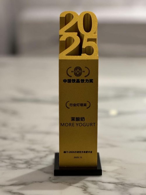 发表时间:2025-12-10 16:35 近日,咖门2026“万有饮力年度大会”圆满落幕,现制酸奶品牌茉酸奶获颁“行业灯塔奖”。大会以“韧性见未来”为主题,汇聚了星巴克中国、蜜雪冰城、喜茶等200+主流品牌。这一奖项是对茉酸奶现有发展的高度认可,也体现了其在食品安全体系、供应链建设、产品创新体验等领域的实力与行业引领性。