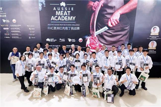 发表时间:2025-11-17 10:13 11月14日,上海浦东新国际博览中心,随着最后一刀精准落下,第二届「FHC澳洲红肉庖丁挑战赛」在热烈的掌声中圆满收官。经过两天紧张激烈的角逐,最终来自中国台湾的綺億國際摘得本届赛事桂冠,同样来自中国台湾的屋馬餐飲集團与马来西亚的TFPR HARIMAU MERAH分列亚、季军。 作为「FHC中国国际烹饪艺术比赛」的系列赛事,挑战赛由澳大利亚肉类及畜牧业协会与上海博华国际展览有限公司联合主办,并与第二十八届FHC上海环球食品展同期举行。本届比赛吸引了12支顶尖团队同台竞技,更以创新的"集章寻宝"互动环节,为专业赛事注入了别样趣味。